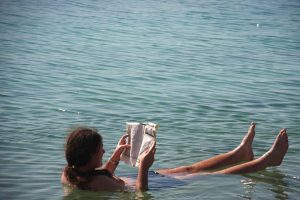 正因为湖水含盐量高、浮力大,造就了死海与其他的江河湖海不同之处。所以它和我们平时看到的江河湖海不一样。就算是不会游泳的“旱鸭子”,也能平躺在死海的水面上,跟着水波慢慢漂,甚至还能躺在上面安安静静地看书呢。