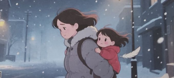 泪光朦胧中,那夜的风雪、刺骨的寒气都渐渐淡去。唯一清晰而滚烫的,是母亲脊背的温度。